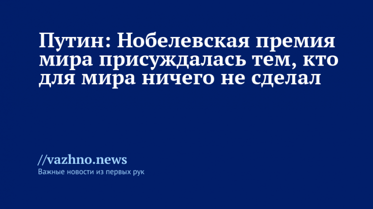 «Бывали случаи, когда Нобелевскую премию мира вручали людям, которые ничем не способствовали миру», — отметил Путин.