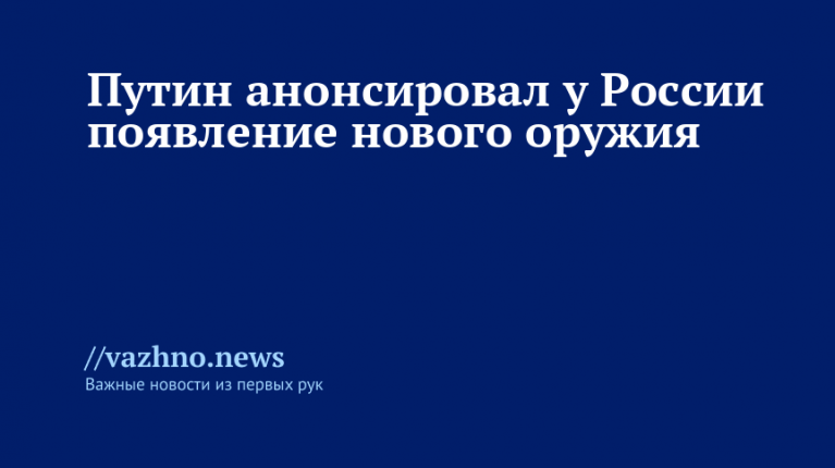 Путин анонсировал новое российское оружие и рассказал о переговорах с США по ДСНВ