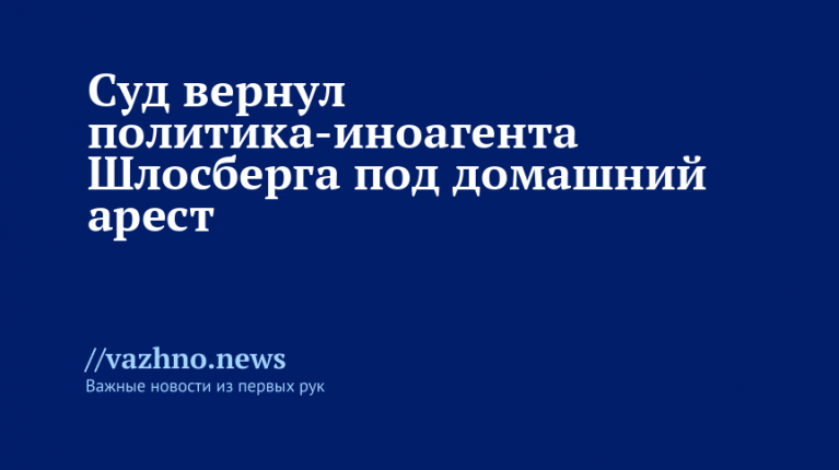«Судья Псковского областного суда Дмитрий Казанцев принял протест прокуратуры на постановление судьи первой инстанции, который 7 октября заменил домашний арест заместителю председателя партии «Яблоко» Льву Шлосбергу на запрет определенных действий. Следовательно, политик вновь окажется под домашним арестом», — говорится в заявлении.