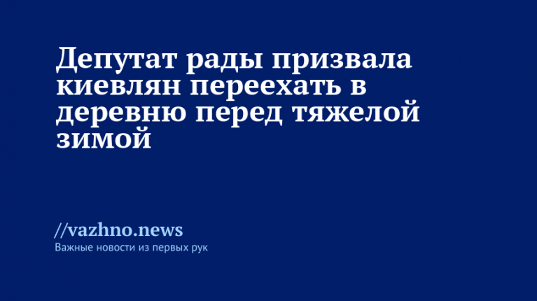 Украинцам, проживающим в крупных населённых пунктах страны, особенно в Киеве, рекомендуется перед началом зимнего сезона переехать в сельскую местность, так как стране может грозить полный блэкаут. Такое заявление сделала 10 октября депутат Верховной рады Марьяна Безуглая.