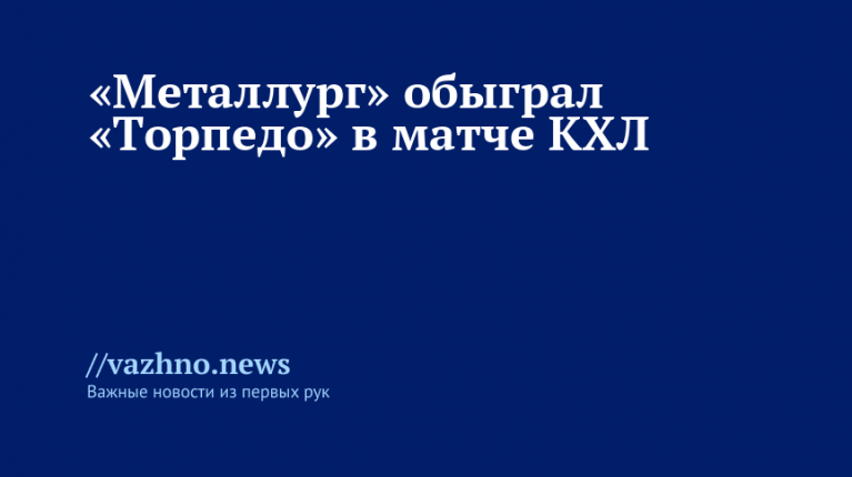 Хоккейный клуб (ХК) «Металлург» из Магнитогорска одержал победу над нижегородским «Торпедо» в матче регулярного сезона Континентальной хоккейной лиги (КХЛ).