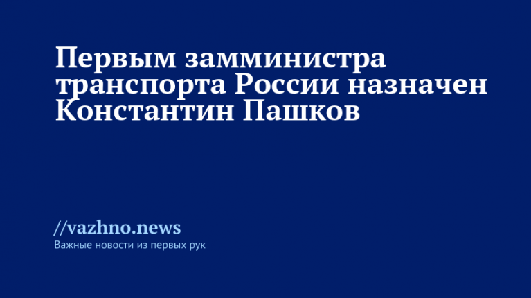 «Пашков Константин Анатольевич назначен первым заместителем Министра транспорта, ранее он занимал должность заместителя Министра», – говорится в сообщении.