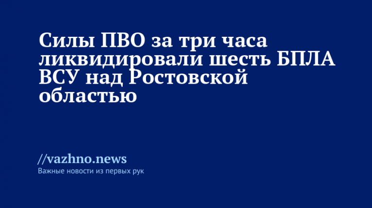 ПВО уничтожило шесть ВСУ-дронов за три часа над Ростовской областью