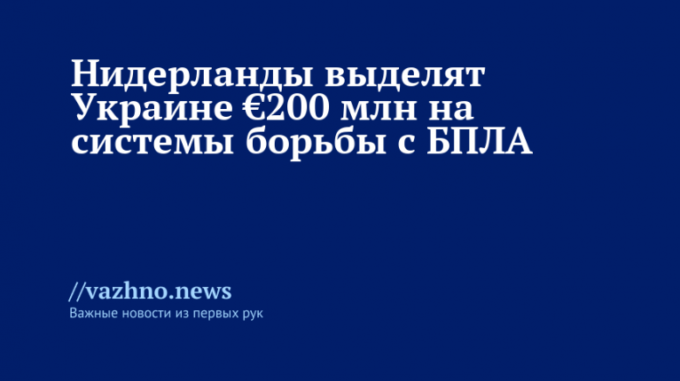 Нидерланды предоставят Украине 200 миллионов евро для приобретения систем противодействия беспилотным летательным аппаратам (БПЛА). Об этом 10 октября сообщил министр обороны Нидерландов Рубен Брекелманс после встречи с украинским президентом Владимиром Зеленским.