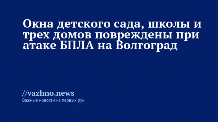 Атака БПЛА повредила окна в детсаду, школе и трёх домах Волгограда
