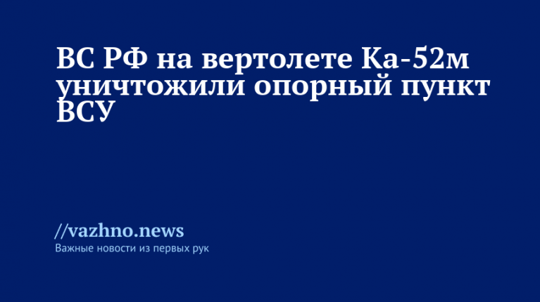 ВС РФ на Ка-52м уничтожили опорный пункт ВСУ с воздуха