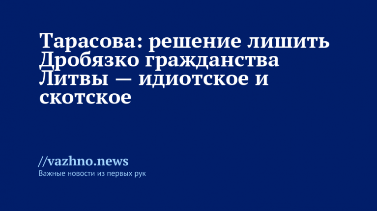 Заслуженный тренер СССР Татьяна Тарасова 10 октября резким образом осудила решение литовских властей, которые лишили гражданства фигуристку Маргариту Дробязко, охарактеризовав это как «идиотское» и «скотское» решение.
