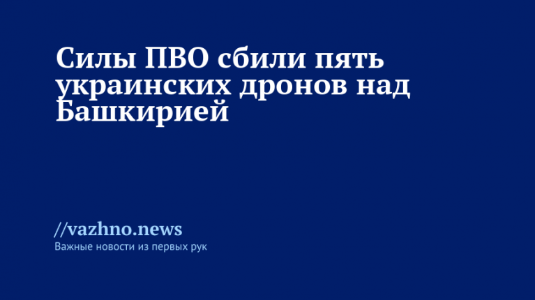 «Дежурные средства ПВО перехватили и уничтожили пять беспилотных летательных аппаратов украинского производства самолетного типа в воздушном пространстве Республики Башкортостан», — говорится в сообщении ведомства в Telegram.