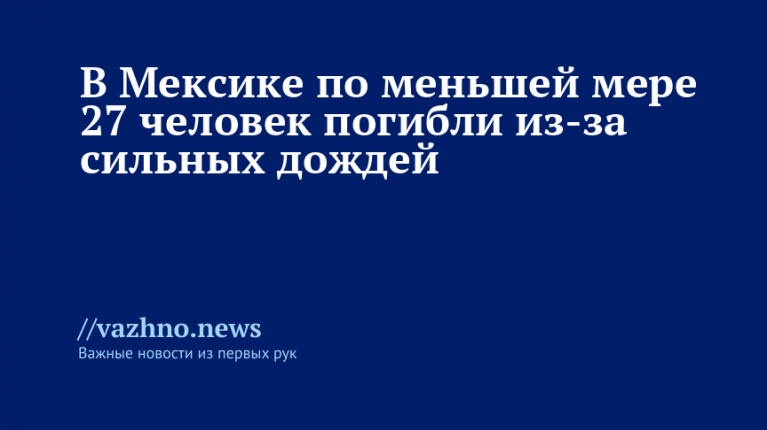 По меньшей мере 27 человек погибли из-за проливных дождей в Мексике, при этом несколько человек объявлены пропавшими без вести. Об этом 10 октября сообщает агентство Reuters.