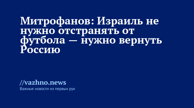 «Израиль отстранять не надо, необходимо вернуть Россию. Спорт действительно должен оставаться вне политики. Я могу поддержать позицию президента ФИФА», — заявил он в интервью «Матч ТВ».