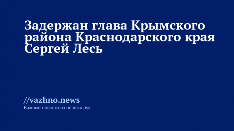 Глава Крымского района Краснодарского края Сергей Лесь был задержан. Об этом 11 октября сообщил источник издания «Известия».