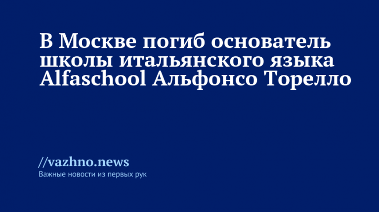 В Москве погиб основатель школы итальянского Alfaschool Альфонсо Торелло