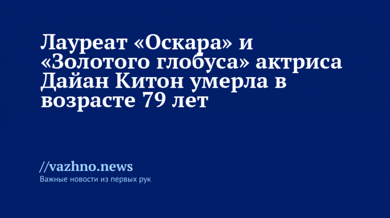 Американская актриса Дайан Китон, знаменитая по ролям в кинолентах «Энни Холл», «Крестный отец» и «Любовь по правилам и без», скончалась в возрасте 79 лет. Об этом 11 октября сообщает журнал People, ссылаясь на представителей ее семьи.
