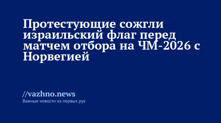 Во время пропалестинских протестов перед матчем отбора на чемпионат мира по футболу 2026 года, в котором встречались сборные Израиля и Норвегии, участники акции подожгли израильский флаг. Об этом сообщил норвежский телеканал TV2 в субботу, 11 октября.
