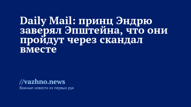 В сообщении говорится: «Принц Эндрю в приватной переписке с Джеффри Эпштейном заявил, что «мы в этом вместе» на следующий день после того, как Daily Mail показала скандальный снимок герцога с его предполагаемой жертвой секс-торговли».