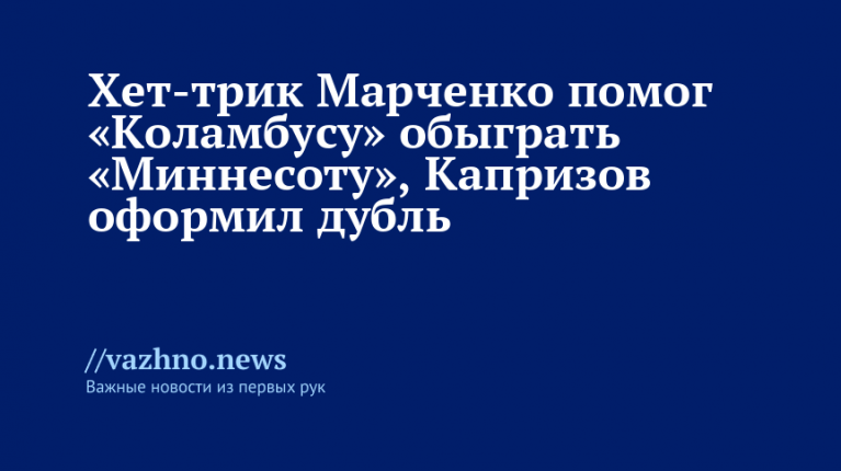 Российский форвард «Коламбуса» Кирилл Марченко сделал хет-трик, поразив ворота соперника на 21-й, 39-й и 44-й минутах игры. Также по одному голу в составе «Блю Джекетс» забили Майлз Вуд, Зак Веренски, Адам Фантилли и Бун Дженнер. У «Миннесоты» дважды отличился Кирилл Капризов, а также отмечены голы Мэтта Болди и Зива Буйума.