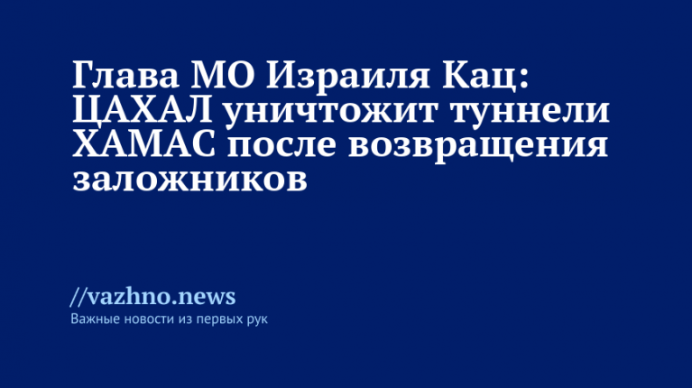 «После возвращения заложников основной целью Израиля станет уничтожение всех террористических тоннелей ХАМАС в секторе Газа», — подчеркнул Кац в своем посте в социальной сети Х (бывш. Twitter).