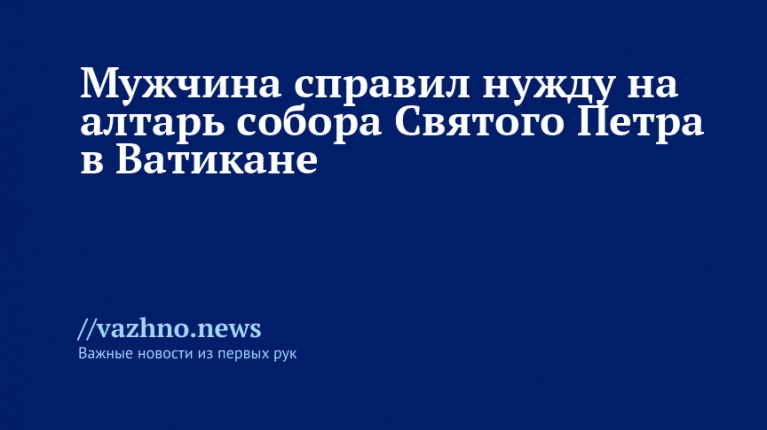 В Ватикане произошел инцидент: мужчина справил нужду прямо на алтаре базилики Святого Петра. Об этом 11 октября рассказала газета Corriere della Sera.