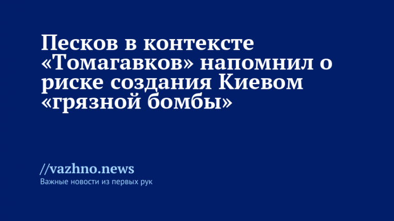 Песков подчеркнул, что Украина потенциально может разработать ядерное оружие, оснащённое ракетами с большой дальностью полёта. Кроме того, он выразил обеспокоенность в связи с заявлениями США о возможности передачи Украине ракет Tomahawk. При этом, по его словам, эти вооружения не способны коренным образом изменить положение на фронте, несмотря на свою значимость.
