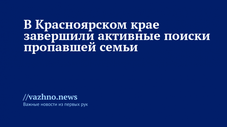В Красноярском крае активная фаза поисков пропавшей семьи завершена, однако работы по ее обнаружению продолжатся в виде выполнения отдельных задач, которые поручены аттестованным спасателям и специалистам. Об этом 12 октября проинформировали представители регионального отделения добровольческого поисково-спасательного отряда «ЛизаАлерт».
