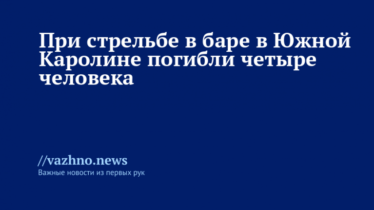 Четыре человека скончались, а 20 получили ранения в результате инцидента со стрельбой в баре на территории Южной Каролины, передает Associated Press.