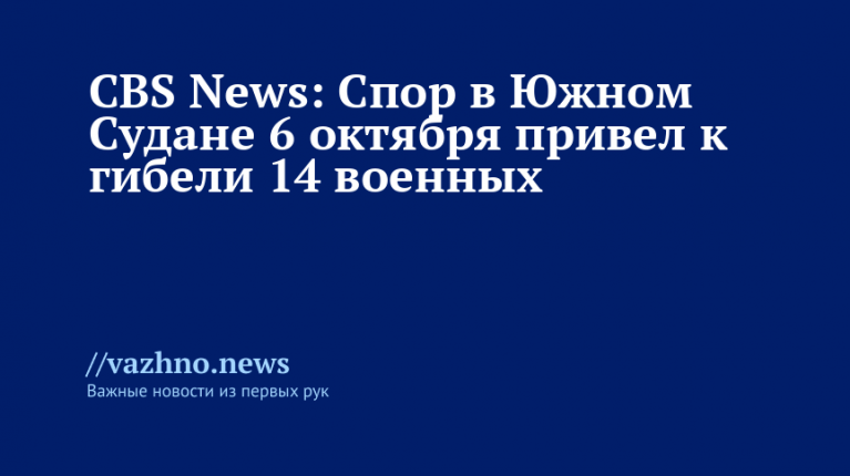 «Минимум 14 солдат были убиты и несколько получили ранения в Южном Судане после того, как спор, связанный с «любовным треугольником», привел к смертельной перестрелке», — говорится в сообщении.