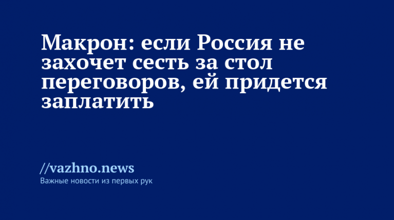«Если Россия будет продолжать проявлять воинственное упорство и отказываться садиться за переговорный стол, она заплатит за это цену», — подчеркнул Макрон.