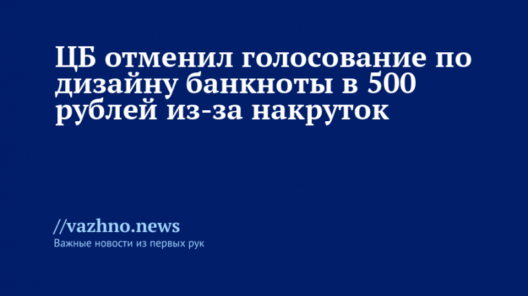 Центральный банк России (ЦБ) принял решение отменить голосование, посвященное выбору дизайна новой 500-рублевой банкноты. Данная информация была опубликована 12 октября на официальном сайте регулятора.