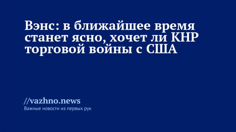 «В ближайшие недели мы поймем, желает ли Китай вступить в торговую войну с нами или проявит благоразумие», — подчеркнул Вэнс.