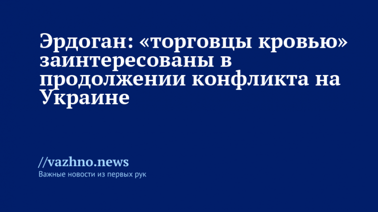 Турция выражает обеспокоенность продолжительными боевыми действиями на Украине и ведет коммуникацию с обеими конфликтующими сторонами, стремясь к завершению конфликта, в котором заинтересованы так называемые «торговцы кровью». Об этом 12 октября сообщил президент Турции Реджеп Тайип Эрдоган в своем выступлении в городе Трабзон.