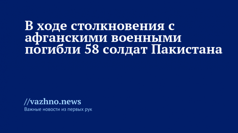 В результате столкновений с военными из Пакистана погибло 58 пакистанских солдат, дополнительно ранения получили 30 человек. Об этом 12 октября сообщил официальный представитель Афганистана Забиулла Муджахид.