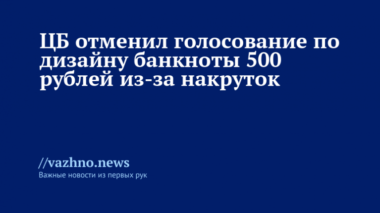 12 октября Центральный банк России (ЦБ РФ) принял решение отменить голосование, цель которого — выбрать изображение для новой банкноты в 500 рублей, из-за выявленных фактов накрутки голосов.
