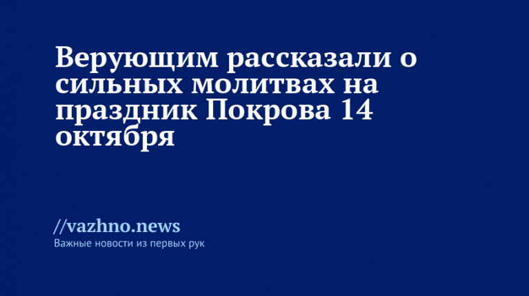 Самая сильная молитва на праздник Покрова БогородицыВ этот день читают молитву «Покров Пресвятой Богородицы» — особое обращение к Богородице с просьбами об исцелении от недугов, защите от бед и по прочим нуждам: