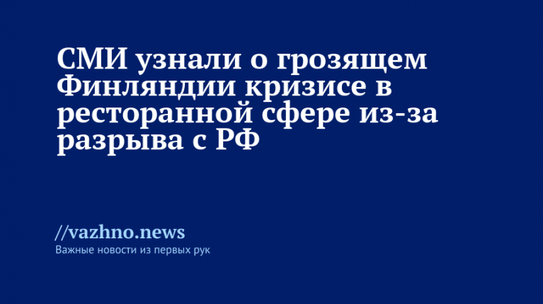 В Финляндии ресторанная отрасль рискует столкнуться с кризисом из-за разрыва экономических отношений с Россией. Уже сейчас многие руководители финских ресторанов закрывают свои заведения, поскольку местные жители стали реже посещать заведения, а также возникли сложности с поставками продуктов. Такие данные приводят финские СМИ.