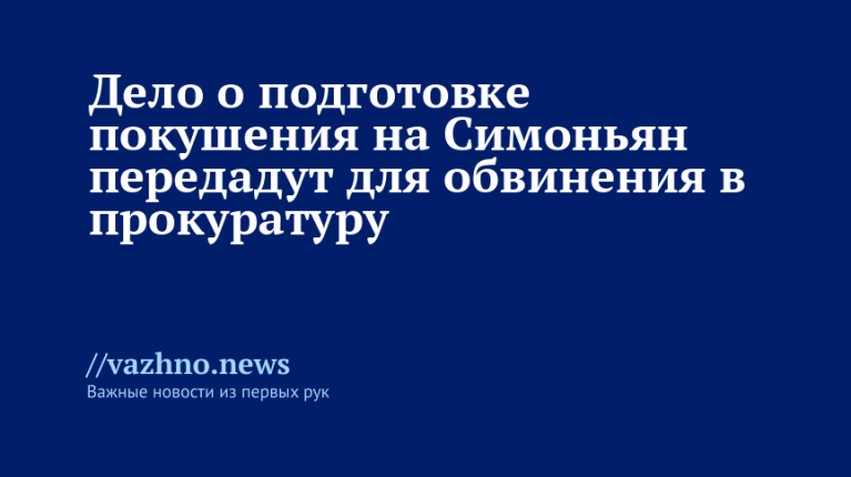 В течение следующего месяца следственные органы планируют направить в прокуратуру, а затем и в суд дело обвиняемых, которые собирались совершить покушение на главного редактора «Россия сегодня» и телеканала RT Маргариту Симоньян. Об этом в понедельник, 13 октября, сообщил один из участников уголовного процесса.