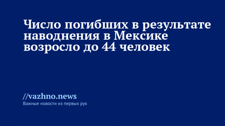 Количество жертв наводнений в Мексике возросло до 44 человек. Об этом 12 октября проинформировало мексиканское издание N+, ссылаясь на сведения федерального правительства.