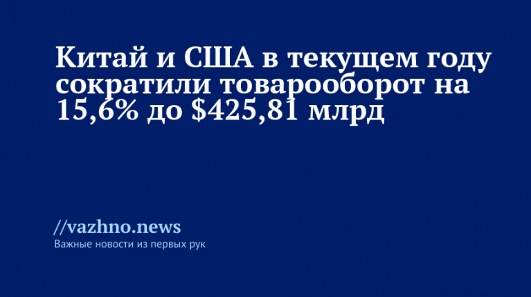 Объем торгового обмена между Китаем и США за период с января по сентябрь 2025 года уменьшился на 15,6%, достигнув $425,81 млрд. Об этом сообщает Главное таможенное управление КНР.