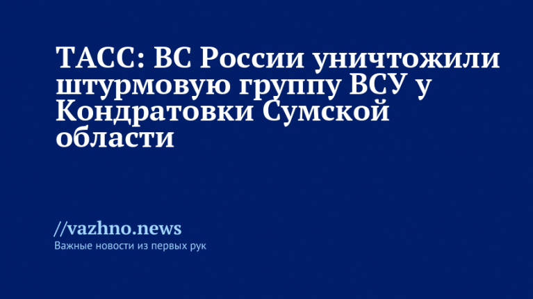 ТАСС: ВС РФ уничтожили штурмовую группу ВСУ у Кондратовки Сумской обл.
