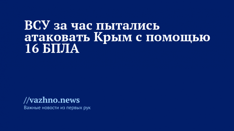«С 07:00 до 08:00 по московскому времени дежурные ПВО перехватили и ликвидировали 16 украинских беспилотных летательных аппаратов в воздушном пространстве Республики Крым», — указано в заявлении.