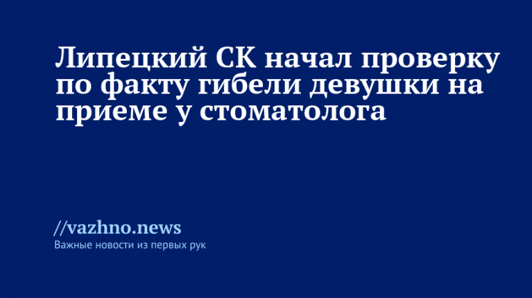 В Липецкой области началась проверка по поводу смерти 23-летней девушки во время приема у стоматолога. Об этом GOROD48 сообщили представители регионального Следственного управления Следственного комитета России.