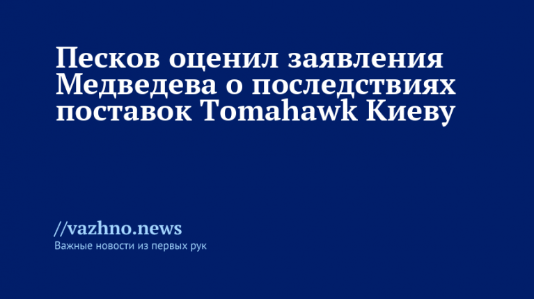 Песков оценил слова Медведева о поставках Tomahawk Киеву и их последствиях