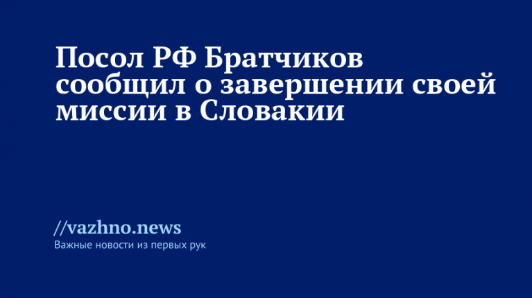 Посол Российской Федерации в Словакии Игорь Братчиков завершит свою пятилетнюю дипломатическую работу в Братиславе и покинет свою должность. Об этом 13 октября было сообщено на сайте российского посольства.