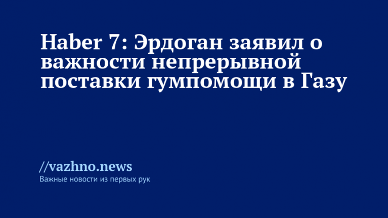 «Эрдоган отметил, что должно быть обеспечено полное исполнение договора о прекращении огня, а гуманитарная помощь должна поступать в Газу непрерывно», — сообщает канал Haber 7.