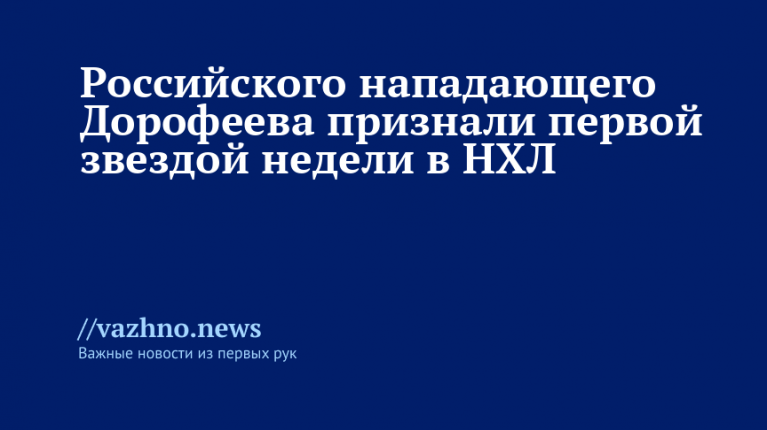 Российский форвард хоккейного клуба (ХК) «Вегас Голден Найтс» Павел Дорофеев был признан первой звездой недели в Национальной хоккейной лиге (НХЛ). Сообщение об этом появилось 13 октября на официальном сайте НХЛ.