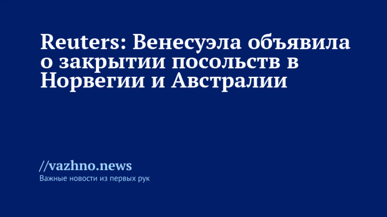 Власти Венесуэлы приняли решение ликвидировать посольства в Австралии и Норвегии, а также открыть новые дипмиссии в странах Буркина-Фасо и Зимбабве. Об этом 13 октября проинформировало агентство Reuters.