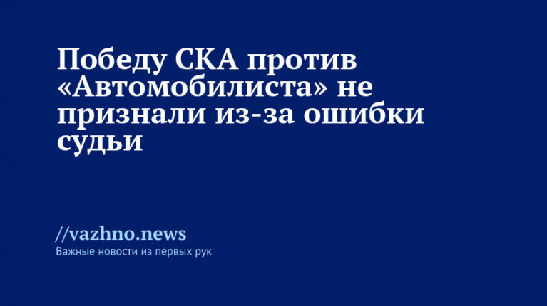 Победу СКА над «Автомобилистом» отменили из-за судейской ошибки