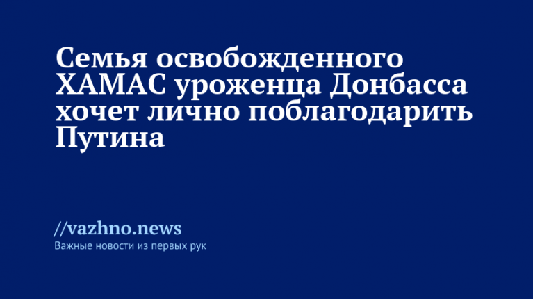 Семья Максима Харкина, уроженца Донбасса, который недавно был освобожден из плена палестинского движения ХАМАС, собирается посетить Москву, чтобы лично выразить благодарность президенту России Владимиру Путину за спасение своего родственника. Об этом 14 октября сообщила мать освобожденного, Наталья.