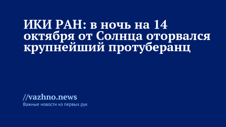 В ночь с 13 на 14 октября с поверхности Солнца отделился один из самых больших протуберанцев, зарегистрированных в текущем году. Об этом 14 октября сообщили специалисты Лаборатории солнечной астрономии Института космических исследований (ИКИ) Российской академии наук.