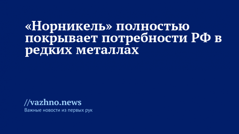 «Норникель» обеспечивает Россию всеми редкими металлами полностью