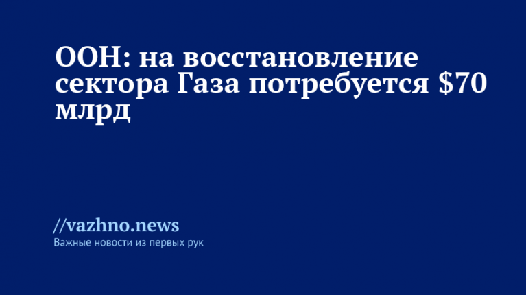Потребность в $70 млрд для восстановления сектора Газа была озвучена 14 октября спецпредставителем главы Программы развития ООН (UNDP) Яко Силлиерсом на брифинге в Женеве.